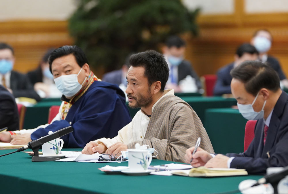 3月7日,在參加十三屆全國人大四次會議青海代表團(tuán)審議時,扎西多杰就玉樹災(zāi)后重建新變化發(fā)言。新華社記者李學(xué)仁攝