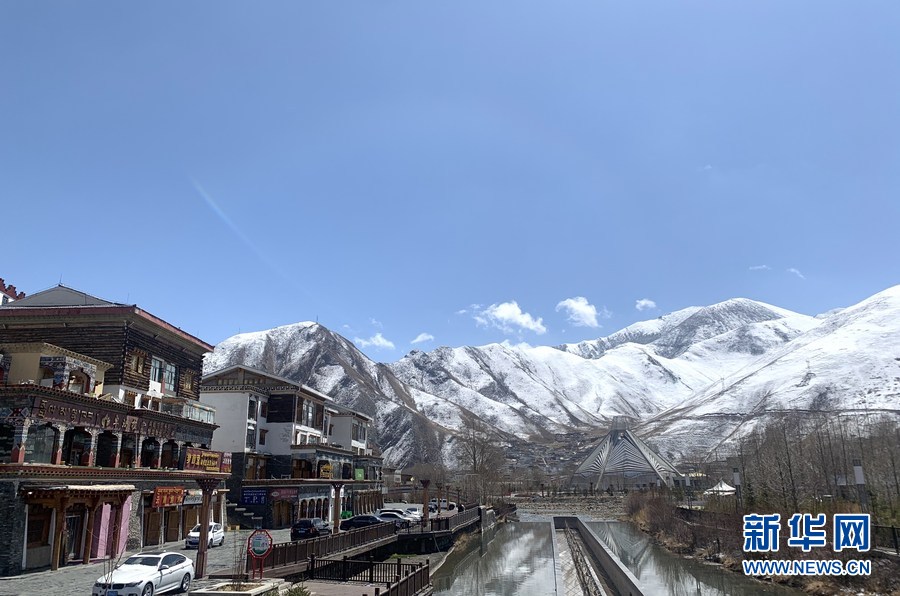 這是位于玉樹市扎曲河畔林立的商鋪。(2021年4月14日攝)新華社記者 李琳海 攝
