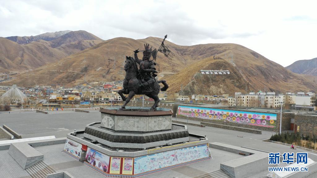 這是青海省玉樹藏族自治州玉樹市格薩爾王廣場(chǎng)(3月10日攝,無人機(jī)照片)。新華社記者 張宏祥 攝