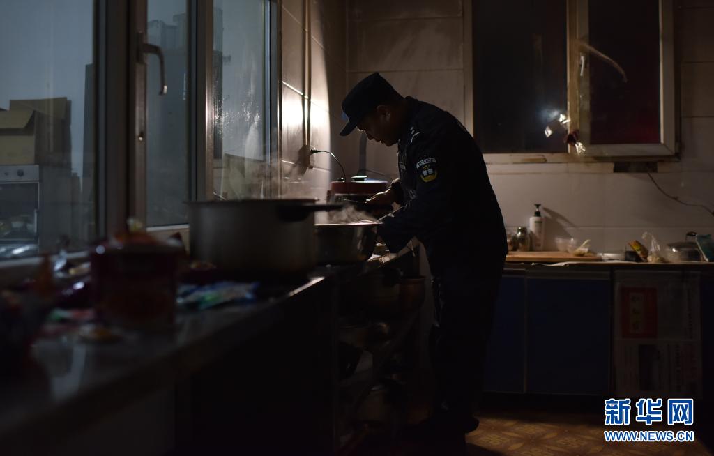 4月19日,袁廣明在可可西里索南達(dá)杰保護站做晚飯。新華社記者 吳剛 攝
