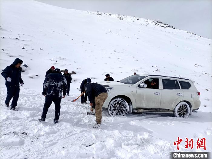 日前,青海省南部的三江源區(qū)域多地降雪,當(dāng)?shù)厣鷳B(tài)管護(hù)人員開啟艱難的風(fēng)雪巡山路。據(jù)悉,青海省玉樹藏族自治州曲麻萊縣約改鎮(zhèn)崗當(dāng)村的生態(tài)管護(hù)人員,野外巡山途中,大雪封山車輛被困。生態(tài)管護(hù)人員清雪無果,便徒步抄小道抵達(dá)巡護(hù)目的地。返程時(shí),當(dāng)?shù)啬撩裼媚ν熊噷⑸鷳B(tài)管護(hù)人員送至車輛旁邊。