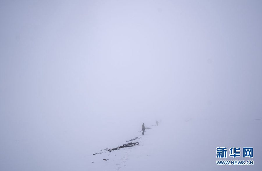 4月23日,祁連山國家公園沙龍灘管護(hù)站的生態(tài)管護(hù)員冒雪徒步巡護(hù)。新華社記者 費(fèi)茂華 攝