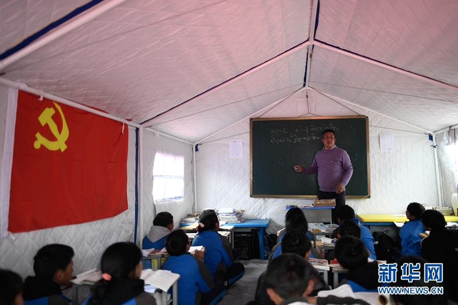 5月23日,瑪多縣民族寄宿制中學(xué)學(xué)生在帳篷教室上課。新華社記者 張龍 攝