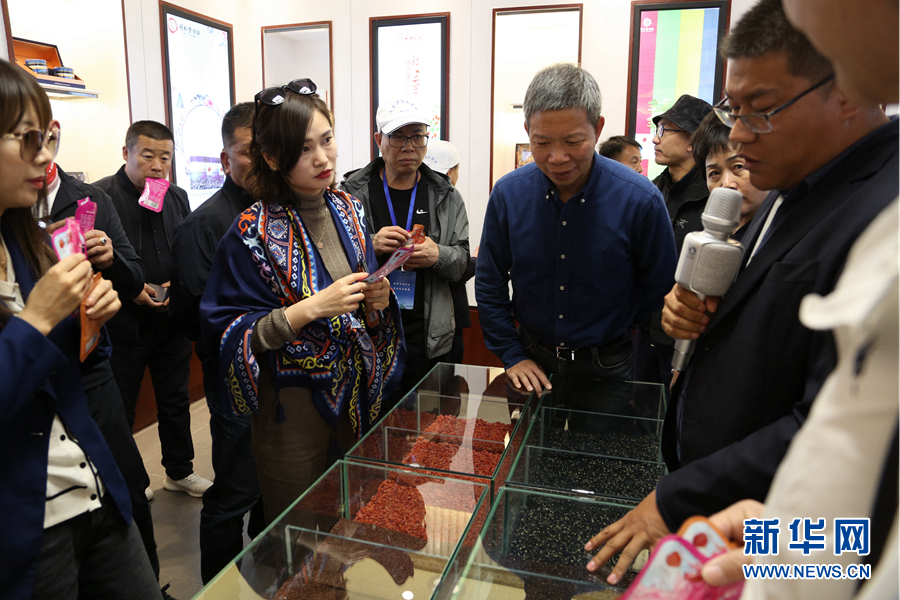 現(xiàn)場展出的柴達木黑、紅枸杞,吸引著浙商的目光。新華網(wǎng) 卡婭梅朵 攝