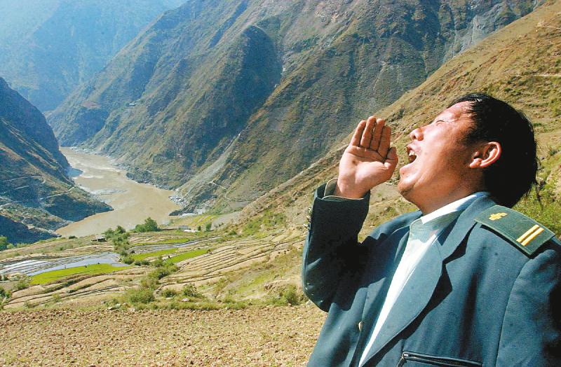 王順友拉開(kāi)嗓子唱一段山歌,排遣送信路上的寂寞孤獨(dú)。四川日?qǐng)?bào)全媒體記者 毛漫丁 攝(資料圖片)