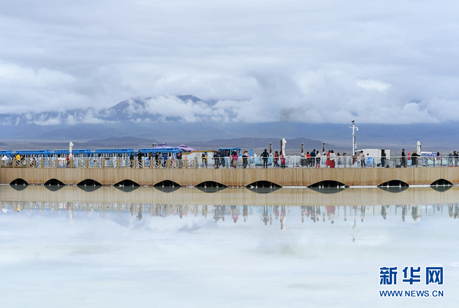 游客在茶卡天空壹號(hào)景區(qū)內(nèi)游覽。新華網(wǎng) 宋忠勇 攝