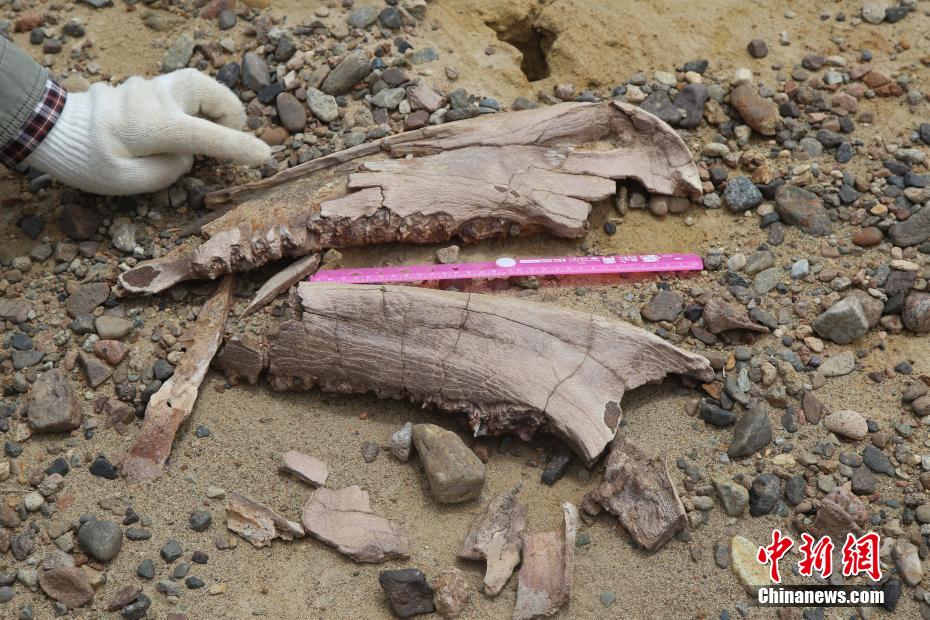 專家表示,本次發(fā)現(xiàn)的3處化石產(chǎn)地為產(chǎn)出地區(qū)區(qū)域地史演化研究、古地理環(huán)境分析、地層時代厘定等提供了重要科學(xué)依據(jù)。圖為真象腿骨化石。 保廣普 攝