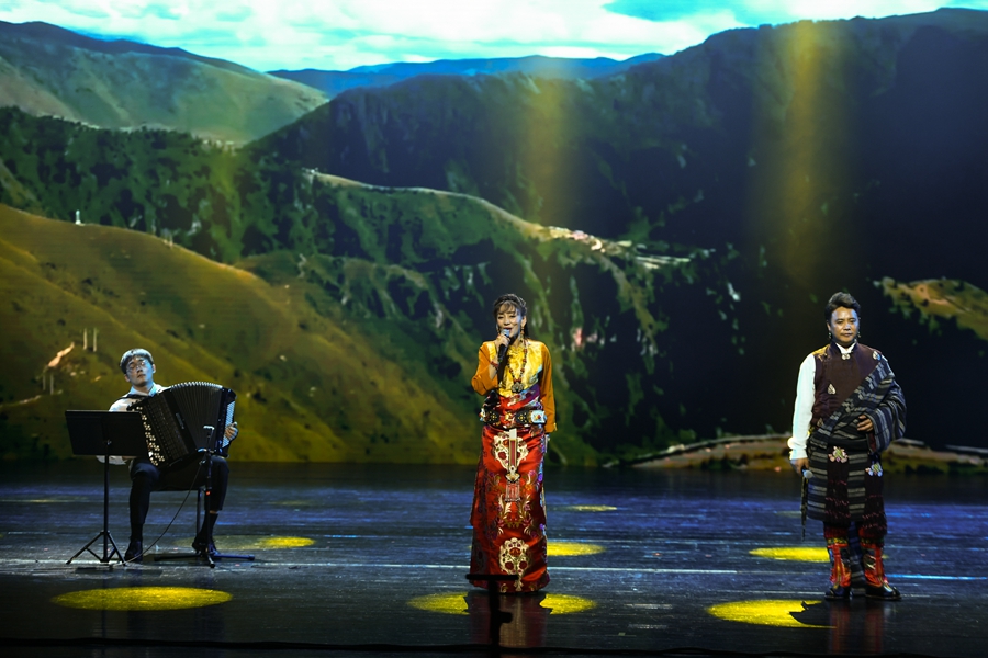 7月16日,手牽手·心連心《從黃河到長(zhǎng)江》主題音樂會(huì)青海西寧站演出在青海大劇院精彩亮相。新華網(wǎng) 潘彬彬 攝