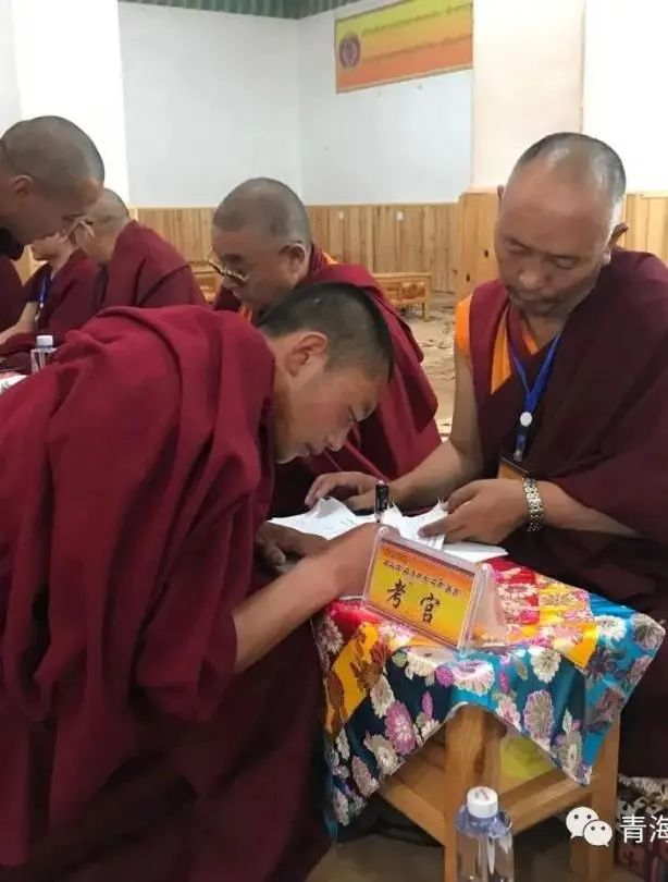 此次招生考試采取現(xiàn)場抽題,中級學(xué)銜智然噶依班的佛學(xué)院理論考試采取辯經(jīng)方式,而初級學(xué)銜禪然巴班采取講經(jīng)或辯經(jīng)方式,預(yù)科班采取筆試方式進行(對母語為非藏語的僧人也可采取口試方式);所有考僧的文化考試采取閉卷,政治考試采取開卷。命題使用了統(tǒng)一題庫的試題,整個招生考試過程嚴(yán)格遵從無地域差別、無教派分別的原則。為確保招生考試的公平、公正,學(xué)院組織各教派經(jīng)師成立7人考評小組,在佛學(xué)理論考試,7位考官打分、去掉一個最高分、去點一個最低分后,取平均分?jǐn)?shù)。果洛州瑪沁縣拉加寺格西加華尖措認為,這是最公平、公正的考試方法。他說:“考官組由全省各教派的經(jīng)師組成,主要是為佛學(xué)辯經(jīng)和講經(jīng)考試打分,這方面主要采取去掉一個最高分和一個最低分,取其他成績平均值后,按照分?jǐn)?shù)權(quán)重計分的方式計分,這種打分方式我認為是非常公平的?!彼€講到“從本次的考試方式和打分方式看,聘請考官兼顧所有教派,打分采取去除最高分和最低分,取中間成績并加以權(quán)重的方式,對考僧取得一個公平公正的成績,也是最好的方法?!?/p>