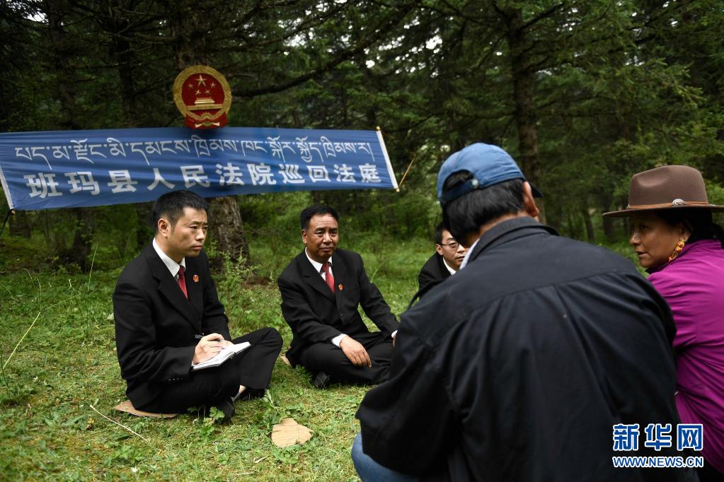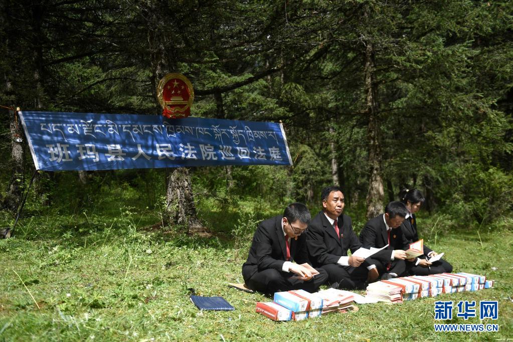 8月7日,班瑪縣人民法院巡回法庭以模擬法庭形式開(kāi)展法治宣傳。新華社記者 李占軼 攝