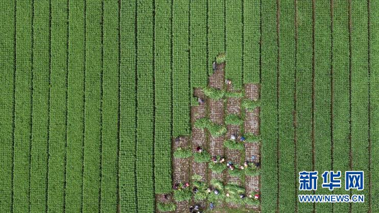 8月13日,在四川省阿壩藏族羌族自治州紅原縣刷經(jīng)寺鎮(zhèn)加當(dāng)村,當(dāng)?shù)厝罕娫谑崭罡咴n筍(無人機(jī)照片)。新華社記者 江宏景 攝