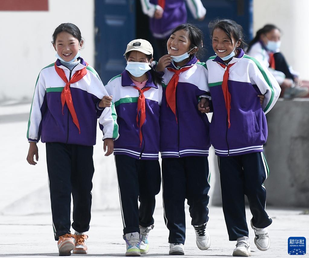 9月1日,在位于果洛藏族自治州瑪沁縣的瑪多地震災(zāi)后過(guò)渡安置一校區(qū),學(xué)生下課后玩耍。新華社記者 張龍 攝