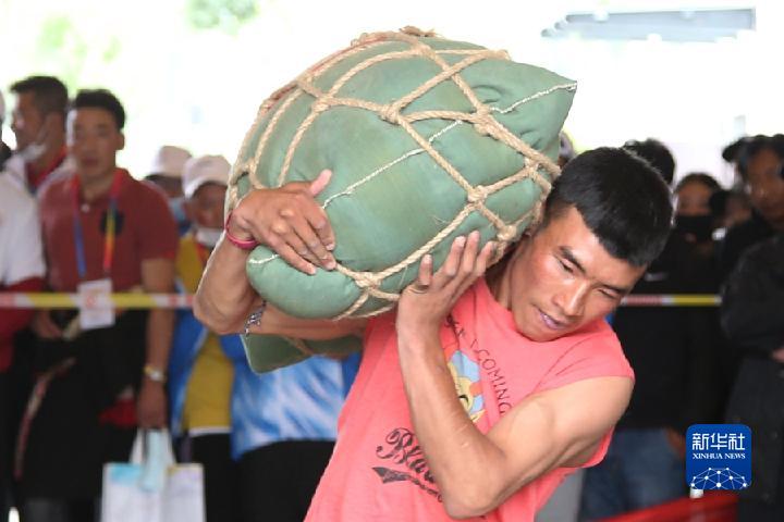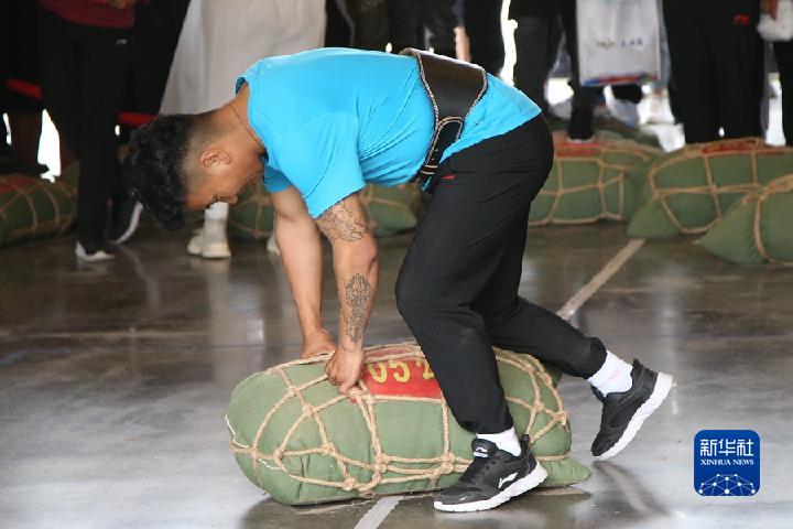 “加油!穩(wěn)??!使勁……”正在舉行的青海省第七屆少數(shù)民族傳統(tǒng)體育運(yùn)動(dòng)會(huì)上,玉樹(shù)藏族自治州選手阿思挽起袖子,蹲下身子,用雙膝頂住一個(gè)沙袋。在教練和隊(duì)友的助威聲中,他深吸一口氣,猛然抱起沙袋,扛在肩上走向終點(diǎn),現(xiàn)場(chǎng)一片歡呼。