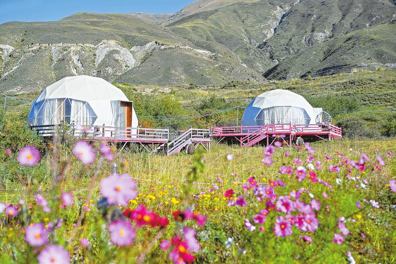 九月初的扎溪卡草原繁花似錦,家住四川省甘孜藏族自治州石渠縣宜牛鄉(xiāng)的藏族姑娘拉姆一早就開(kāi)始準(zhǔn)備牦牛肉、糌粑和酥油茶,因?yàn)榻裉焖突锇閭兗s好了要去“耍壩子”?!拔以谖壹腋浇l(fā)現(xiàn)了一個(gè)寶藏地方,那里山靈水美、綠草茵茵,漂亮得不得了!”拉姆說(shuō)。