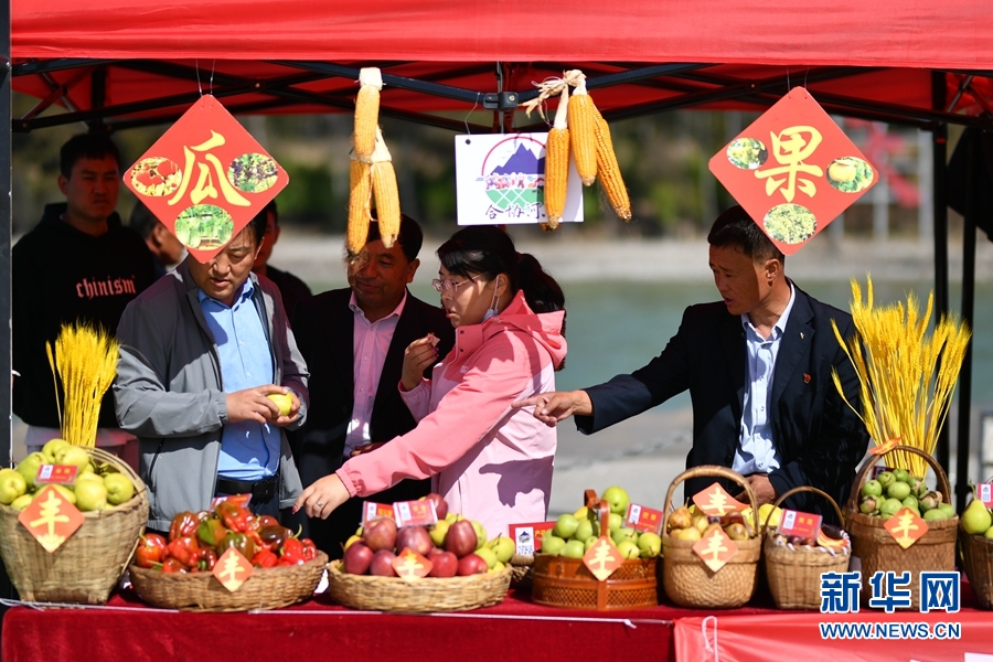 9月23日,貴德縣慶祝第四屆“中國(guó)農(nóng)民豐收節(jié)”活動(dòng)現(xiàn)場(chǎng)展示的當(dāng)?shù)厮?。新華網(wǎng) 潘彬彬 攝