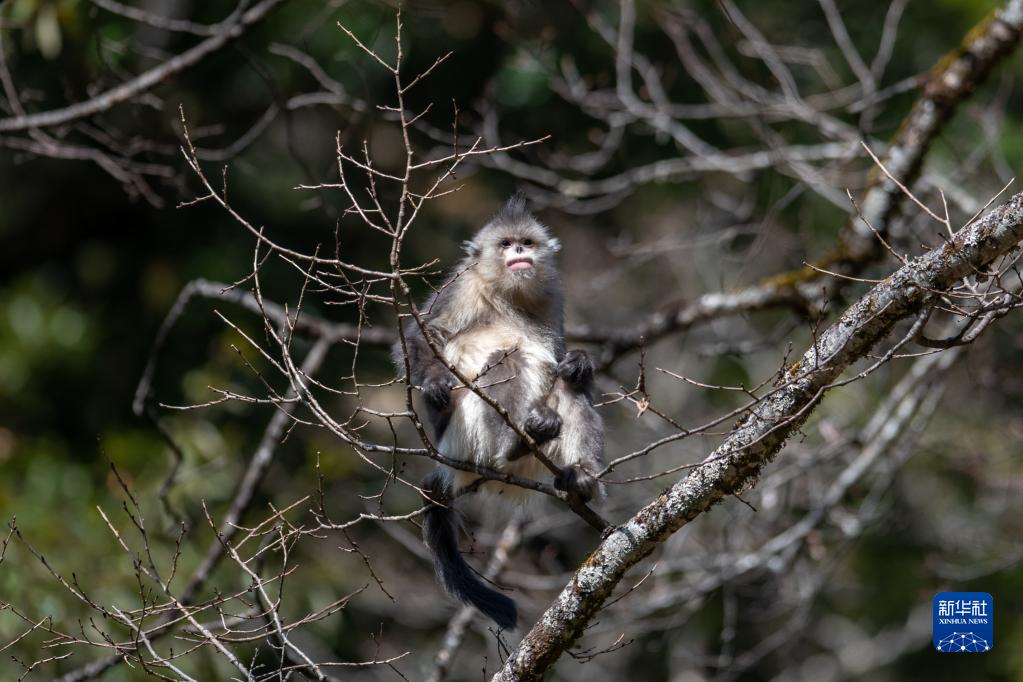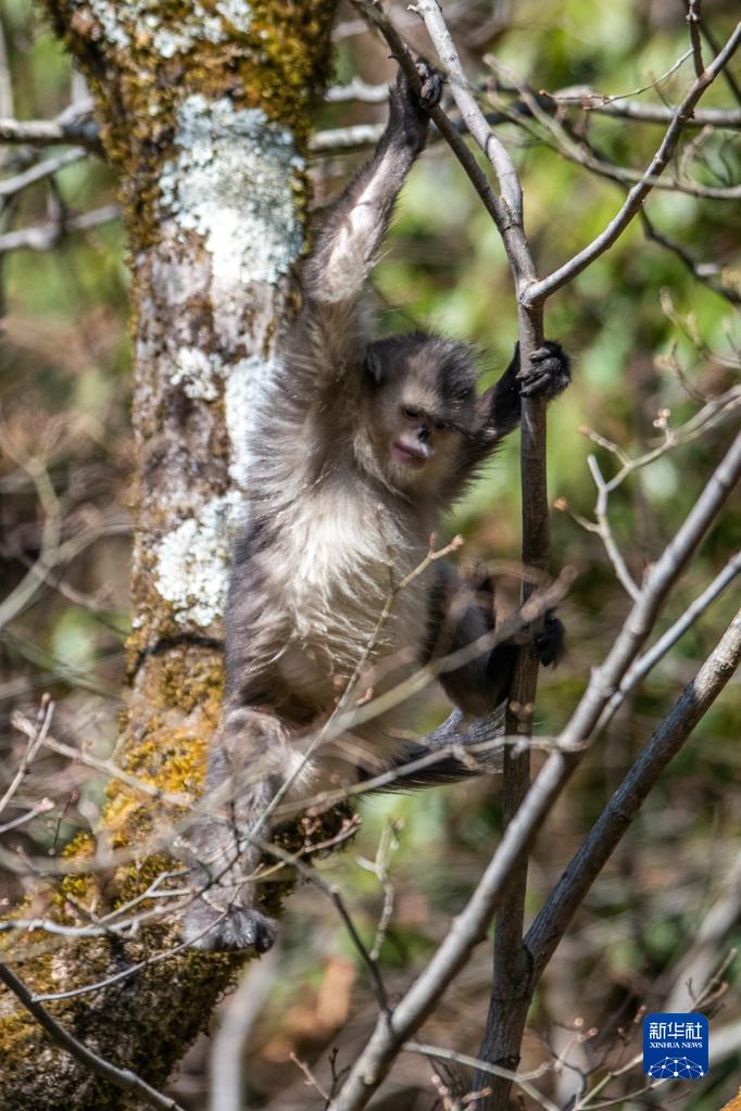 云南迪慶藏族自治州香格里拉滇金絲猴國家公園里的滇金絲猴(3月16日攝)。新華社記者 胡超 攝