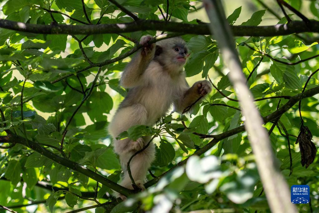 云南迪慶藏族自治州香格里拉滇金絲猴國家公園里的滇金絲猴(7月19日攝)。新華社記者 江文耀 攝