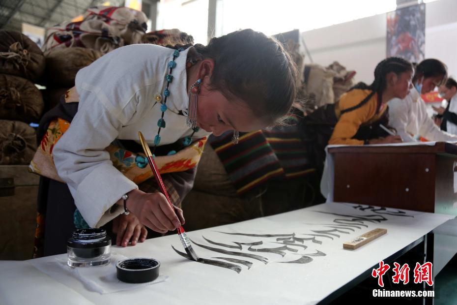 圖為小學(xué)生書(shū)寫(xiě)藏文書(shū)法。張?zhí)砀?攝