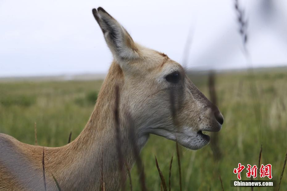 9月27日,在青海省海南藏族自治州共和縣青海湖國(guó)家級(jí)自然保護(hù)區(qū)南岸保護(hù)站,普氏原羚在草場(chǎng)內(nèi)進(jìn)食。 中新社記者 馬銘言 攝