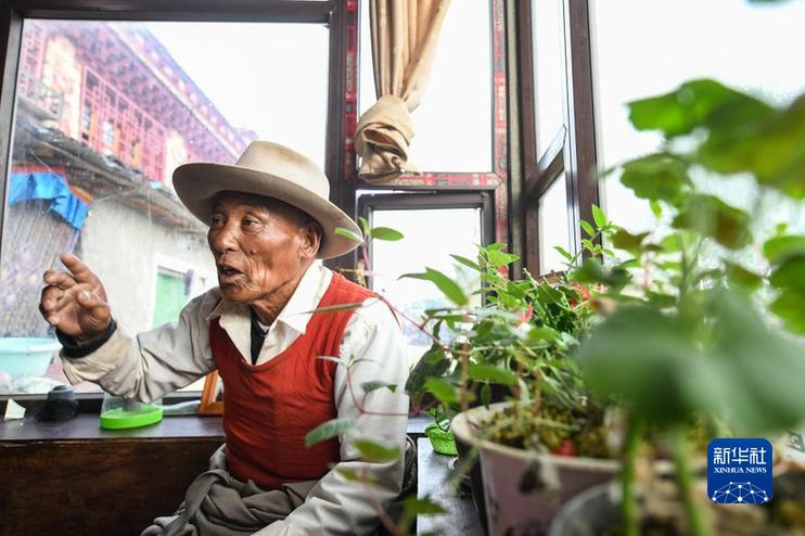 甲洼鎮(zhèn)卡娘村村民阿多講述紅軍當(dāng)年到達甲洼鎮(zhèn)的情景。 新華社記者 王曦 攝