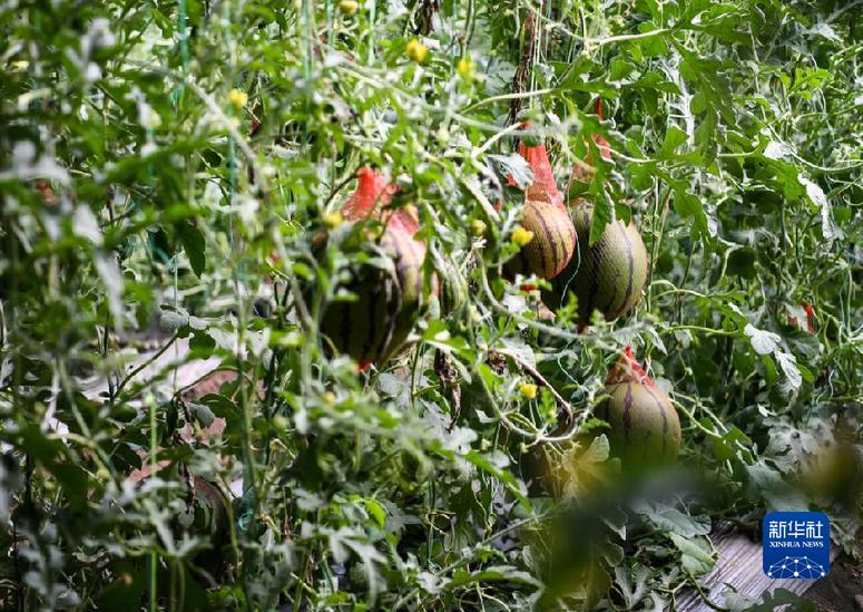 這是在濯?,F(xiàn)代農(nóng)業(yè)園區(qū)大棚內(nèi)拍攝的西瓜。 新華社記者 王曦 攝