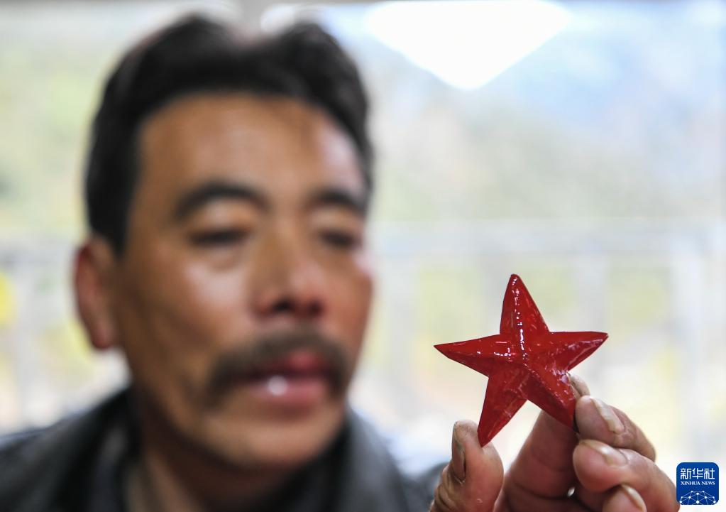 圖為桑安展示制作完成的五角星。新華社記者王曦 攝