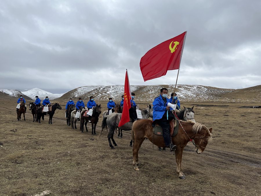 “每年冬季,牧民就會轉場到冬季牧場,牧區(qū)的道路常年被風雪覆蓋,車輛難以通行,只能由我們騎著馬到每家每戶進行宣講。”仁多瑪村委會副主任道吉塔說,為了將黨的政策第一時間傳遞給牧民群眾,當?shù)氐穆?lián)戶長、牧民群眾組建了馬隊前往牧區(qū)進行宣講,牧民群眾親切地稱他們?yōu)椤榜R背宣講隊”。