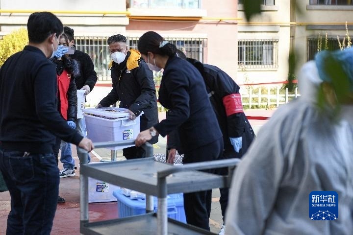 來(lái)到一臨時(shí)核酸采樣點(diǎn),羅宗周帶領(lǐng)工作人員分發(fā)愛(ài)心餐,邊囑咐邊環(huán)抱著5箱酸奶吃力地往前走,“這里有60名工作人員,需要10份清真餐,一箱酸奶12盒,一定把數(shù)量點(diǎn)夠,別少了?!?/p>