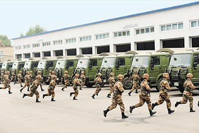 官兵緊急登車。王俊 攝