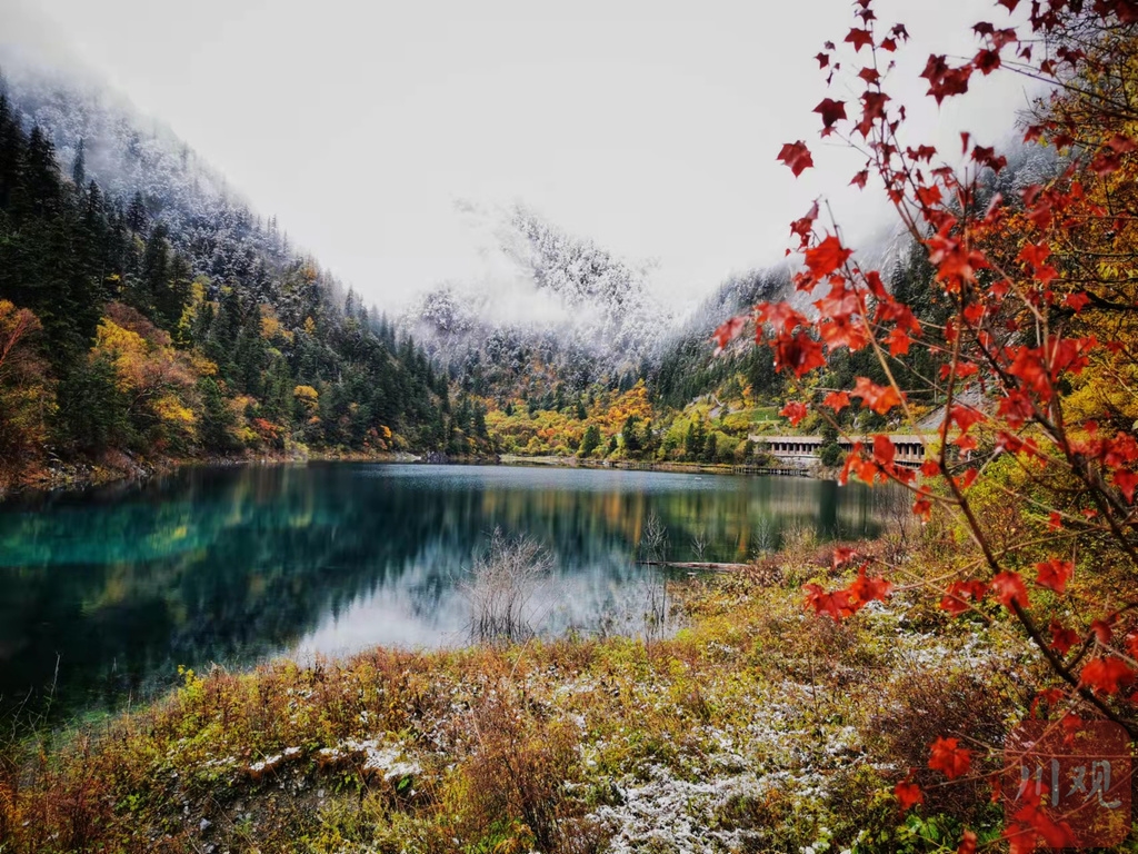 云游四川,半山彩林半山雪|左手雪景,右手彩林,與初冬的九寨溝開啟時空浪漫之旅!