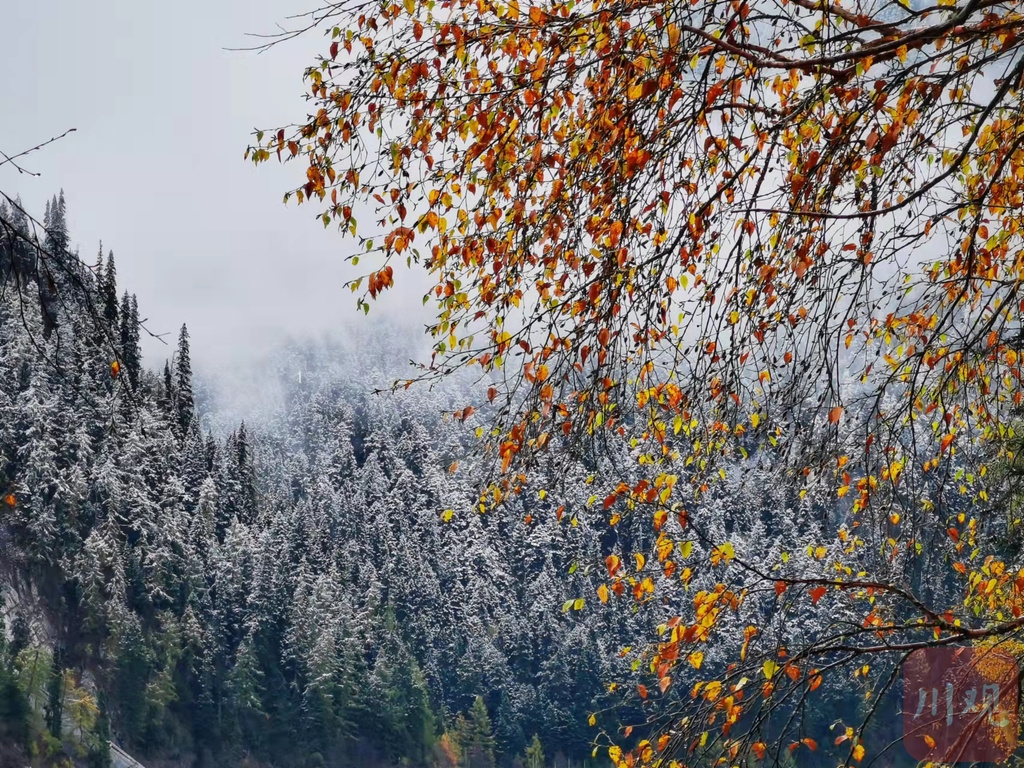 交替時節(jié),四川各地眼下已融合成了多姿多彩的天然調(diào)色盤,或是彩林錯落,或是銀裝素裹,彩林與白雪相遇相擁,半山彩林半山雪的景致讓人無限向往。