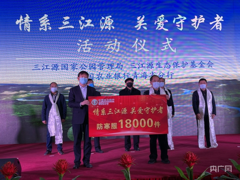 12月9日,三江源生態(tài)保護(hù)基金會、三江源國家公園管理局聯(lián)合中國農(nóng)業(yè)銀行青海省分行在青海省科技館共同舉辦“情系三江源 關(guān)愛守護(hù)者”公益捐贈活動。本次活動旨在切實(shí)為三江源生態(tài)管護(hù)員解決御寒問題,宣傳三江源“中華水塔”生態(tài)保護(hù)、引導(dǎo)社會愛心募捐。