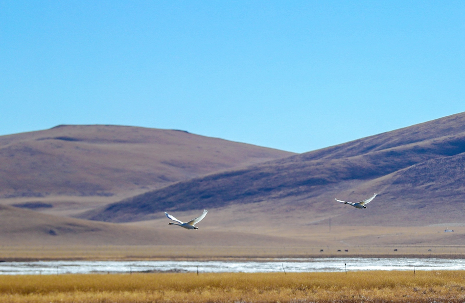 “碌曲縣依托“黃補(bǔ)”區(qū)項(xiàng)目先后將湖邊的尕海鎮(zhèn)、鎮(zhèn)屬機(jī)關(guān)單位遷移出了核心區(qū),將居住在尕海湖邊的牧民群眾實(shí)施了整村搬遷,有效減緩了對(duì)侯鳥的干擾。”甘肅尕海則岔國(guó)家級(jí)自然保護(hù)區(qū)管護(hù)中心尕海保護(hù)站站長(zhǎng)香毛吉說,隨著尕海濕地生態(tài)的持續(xù)改善,為大天鵝提供了穩(wěn)定的越冬水位、豐富的濕地食物,在尕海境內(nèi)越冬的大天鵝數(shù)量逐年增加。