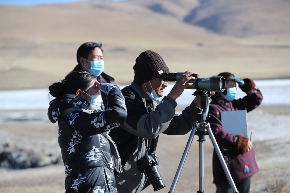 尕海保護(hù)站工作人員實(shí)地開展鳥類監(jiān)測(cè)調(diào)查。
