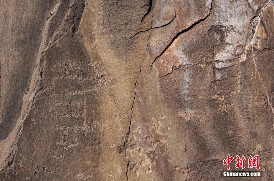 圖為此次發(fā)現(xiàn)的古巖畫(huà)遺存。(12月17日拍攝) 中新社發(fā) 江巴然丁攝