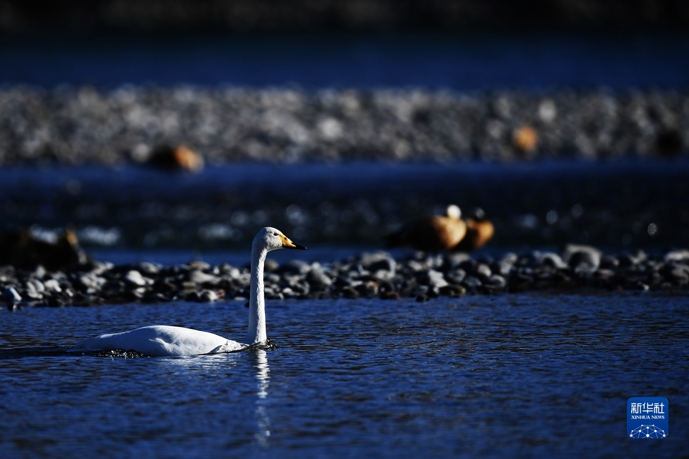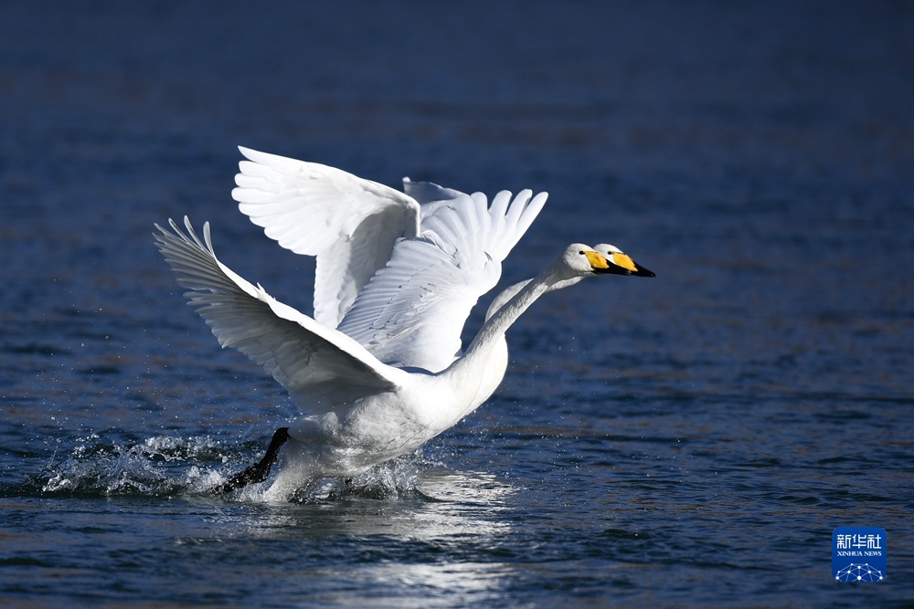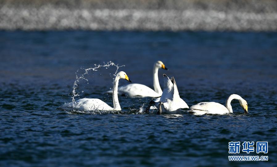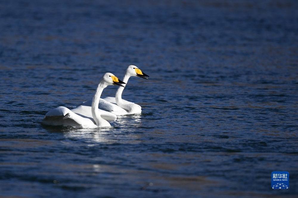 近日,前來越冬的近百只天鵝在青海省海南藏族自治州貴德縣境內(nèi)的黃河濕地覓食休憩,為冬日黃河帶來勃勃生機(jī)。近年來,青海省加大力度保護(hù)治理境內(nèi)黃河流域,改善當(dāng)?shù)厣鷳B(tài)環(huán)境,為越冬候鳥提供良好棲息地。