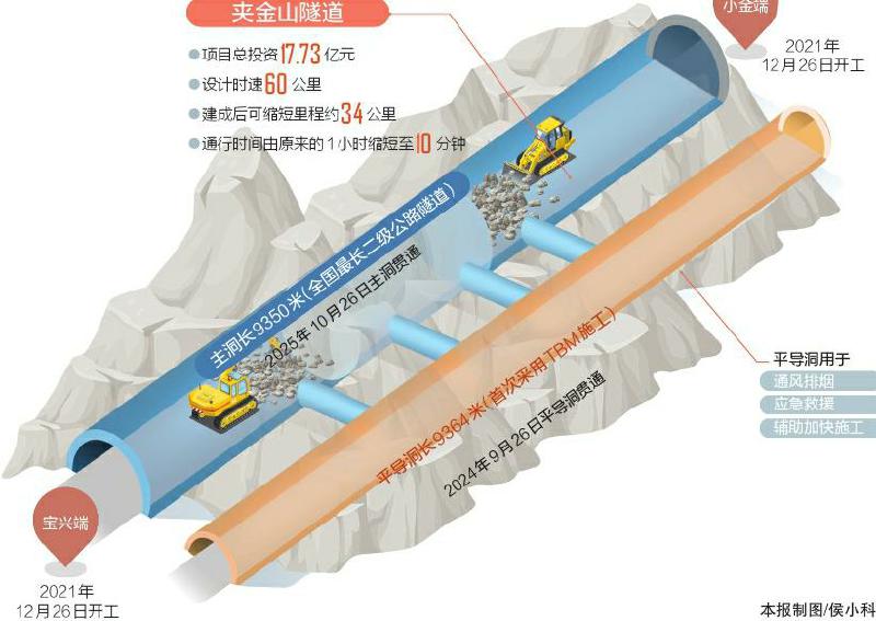 夾金山隧道全長(zhǎng)9.35公里,建設(shè)工期4年,設(shè)計(jì)時(shí)速60公里,進(jìn)出口在海拔3000米左右,比現(xiàn)在的埡口路段降低1000米,可常年全天候通行,解決了夾金山越嶺路段冬季長(zhǎng)期管制通行的問題。隧道建成后,將節(jié)約翻越夾金山里程34公里,通行時(shí)間將由現(xiàn)在的最快1小時(shí)縮短為10分鐘。