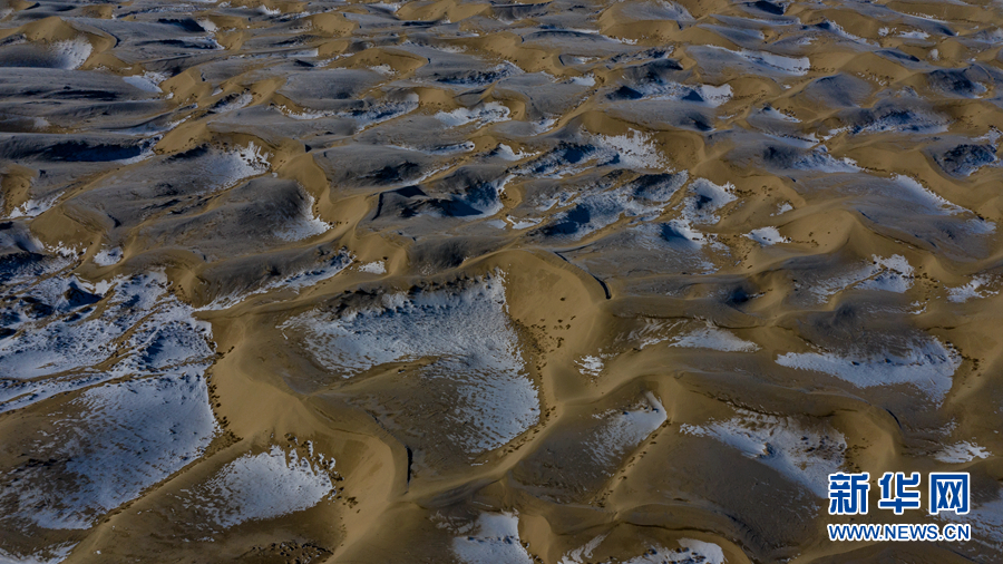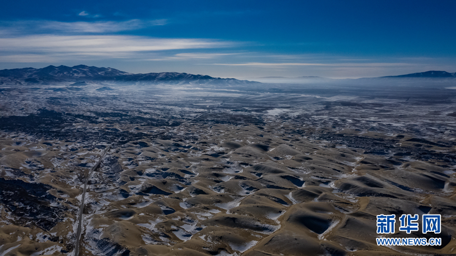 冬日青海湖畔的沙丘被冰雪覆蓋。新華網(wǎng) 宋忠勇 攝