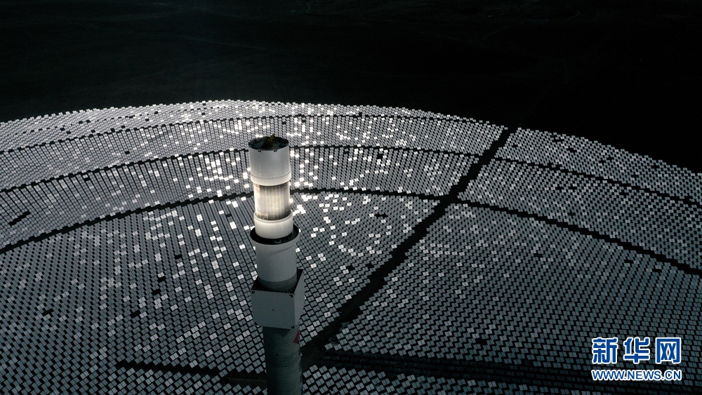 位于青海省海南藏族自治州共和縣光伏產(chǎn)業(yè)園內(nèi)一處塔式光熱發(fā)電項目(無人機照片)。新華社記者 張宏祥 攝