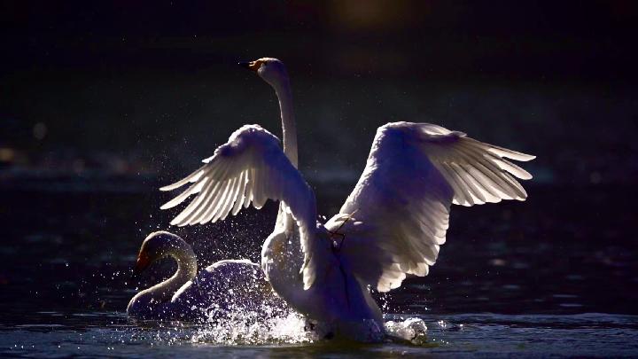午后,陽光鋪灑大地,黃河濕地水面波光粼粼。在位于青海省海東市化隆回族自治縣群科鎮(zhèn)安達其哈村的黃河水面上,一群大天鵝正悠然覓食。它們時而扇動翅膀躍躍欲試,時而一頭扎入水中尋找食物……