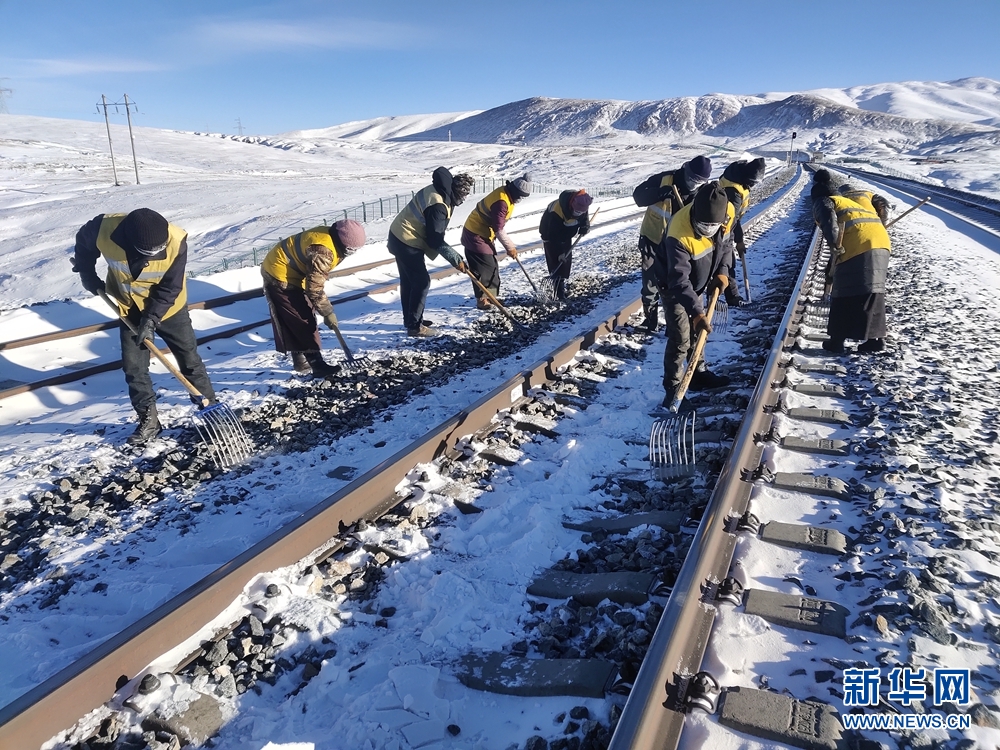春運期間,他們頂風(fēng)雪、冒嚴(yán)寒,堅守在平均海拔超過4600米的工作崗位上??谡?、脖套、棉帽……是他們的標(biāo)配,每天工作期間都需將自己包裹得嚴(yán)嚴(yán)實實。他們是中國鐵路青藏集團(tuán)公司格爾木工務(wù)段的一線職工,是春運路上最美的“蒙面人”。圖片由中國鐵路青藏集團(tuán)公司格爾木工務(wù)段旦增桑珠、馬祎俊、許煒提供