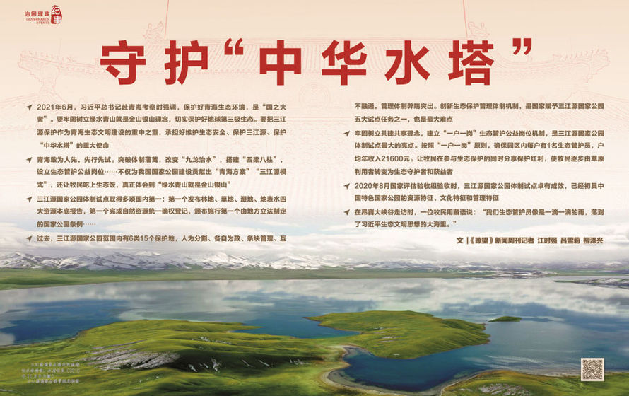 2021年6月,習(xí)近平總書記赴青??疾鞎r(shí)強(qiáng)調(diào),保護(hù)好青海生態(tài)環(huán)境,是“國(guó)之大者”。要牢固樹立綠水青山就是金山銀山理念,切實(shí)保護(hù)好地球第三極生態(tài)。要把三江源保護(hù)作為青海生態(tài)文明建設(shè)的重中之重,承擔(dān)好維護(hù)生態(tài)安全、保護(hù)三江源、保護(hù)“中華水塔”的重大使命。要繼續(xù)推進(jìn)國(guó)家公園建設(shè),理順管理體制,創(chuàng)新運(yùn)行機(jī)制,加強(qiáng)監(jiān)督管理,強(qiáng)化政策支持,探索更多可復(fù)制可推廣經(jīng)驗(yàn)。