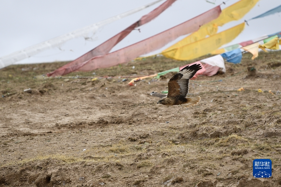 2021年5月25日,一只鷹在三江源國(guó)家公園黃河源園區(qū)內(nèi)飛翔。新華社記者 張龍 攝