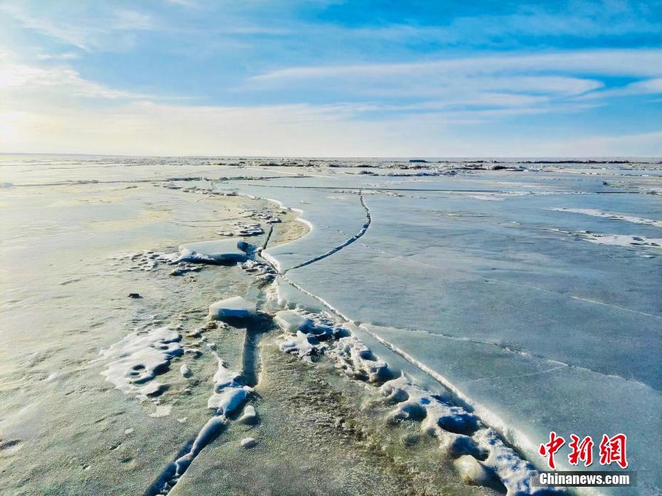 圖為青海湖邊的冰層慢慢裂開。趙海梅 攝