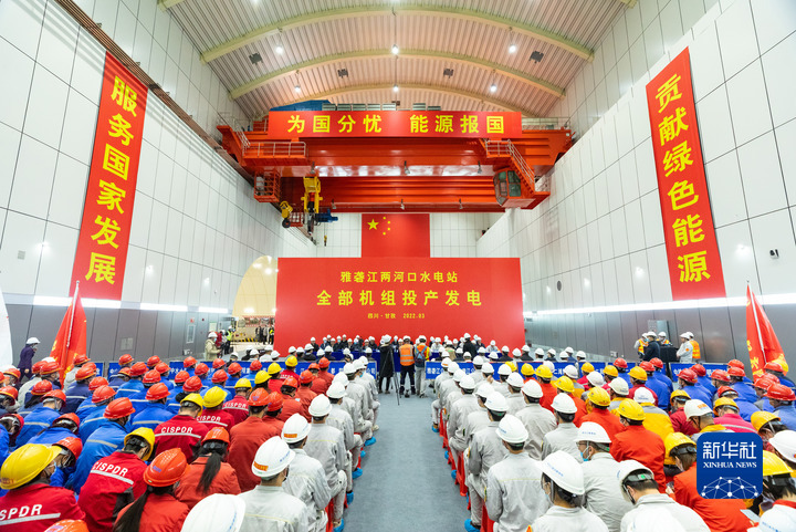 3月18日拍攝的雅礱江兩河口水電站全部機組投產(chǎn)發(fā)電儀式。新華社記者 沈伯韓 攝