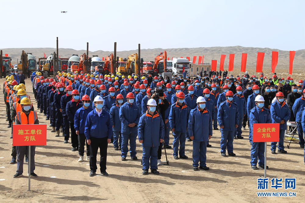 海西州2022年首批項(xiàng)目集中開復(fù)工儀式格爾木市現(xiàn)場(chǎng)。新華網(wǎng) 馮春梓 攝