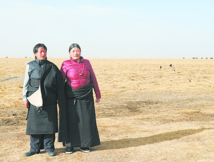 年復(fù)一年,如科每天帶上工作證、望遠(yuǎn)鏡、茶水和干饃饃,從他居住的觀測(cè)站出發(fā),騎著摩托車(chē)巡護(hù)濕地;他的妻子沿著湖泊撿拾垃圾,守護(hù)著黑頸鶴的棲居環(huán)境,守護(hù)著野生動(dòng)物的美好家園。