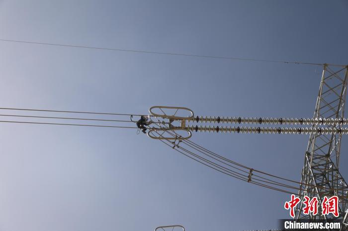 圖為國(guó)網(wǎng)青海超高壓公司輸電專業(yè)人員正在開(kāi)展750千伏青塔I線14號(hào)鐵塔消缺工作。 董慶芳 攝
