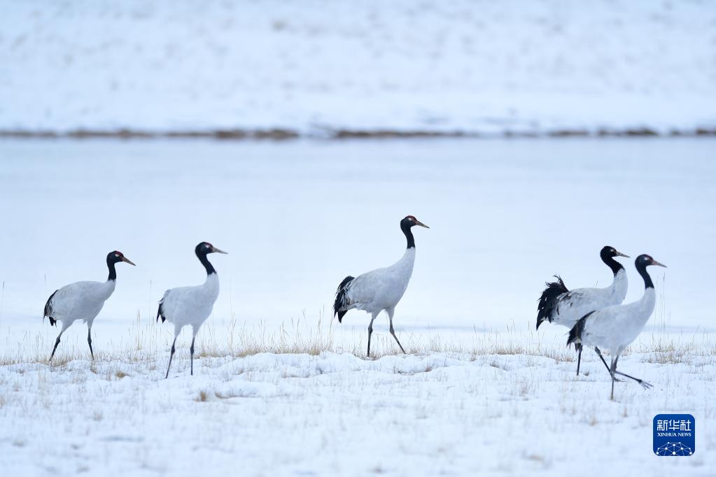 今年3月,青海果洛藏族自治州瑪多縣境內(nèi)的三江源國(guó)家公園,蓑羽鶴在飛翔。新華社記者 呂雪莉 攝