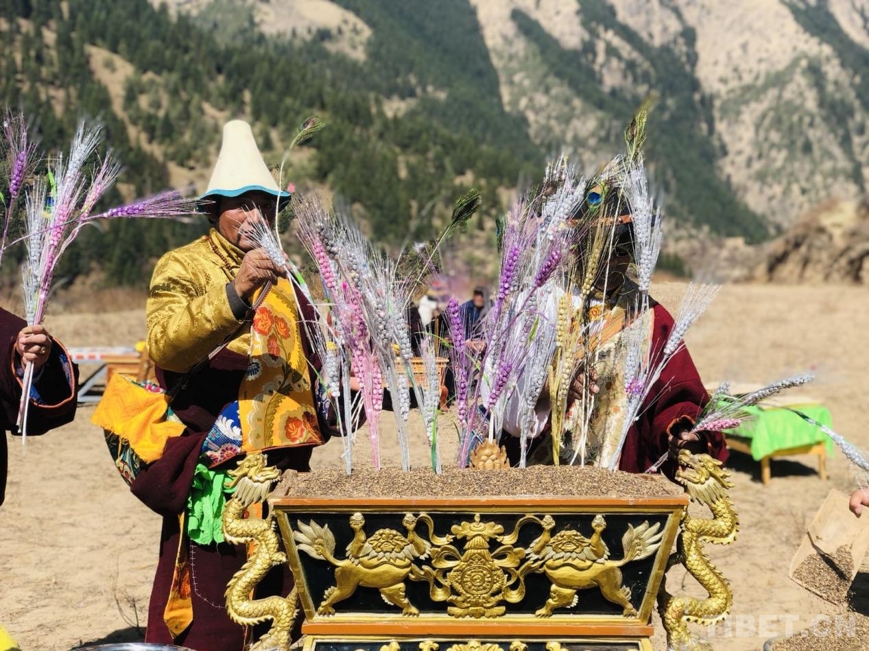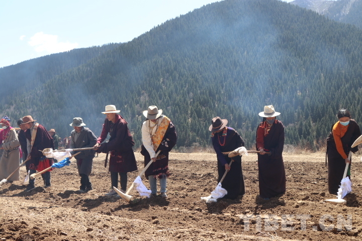 儀式上,綠油油的柏枝上火舌跳動,升起裊裊桑煙,大家載歌載舞,祈求風(fēng)調(diào)雨順、五谷豐登,歌聲、笑聲久久回蕩在田間地頭?!办猩F矶\”“開耕破土”,每一步儀式都莊嚴(yán)肅穆飽含著農(nóng)牧民對土地的虔誠。當(dāng)開耕第一犁破土,藏了一冬的泥土被溫柔喚醒;當(dāng)?shù)谝涣7N子帶著人們的希望和祝福落入大地母親的懷抱,滿懷期望地祈求一年的風(fēng)調(diào)雨順、五谷豐登。